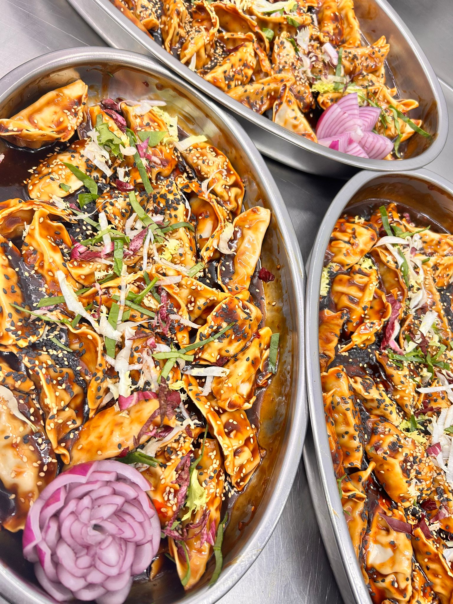 Las gyozas rellenas pollo son unas pequeñas empanadillas japonesas hechas al vapor. Acompañadas de salsa Agridulce y soja.